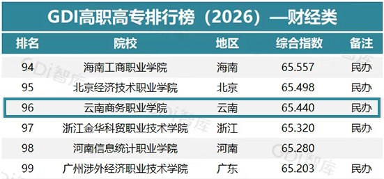 4月15日,GDI智库发布“GDI高职高专排行榜(2026)—财经类”,榜单以教育部最新一次公布的《全国普通高等学校名单》为依据,对全国1501所高职院校进行科学评价。